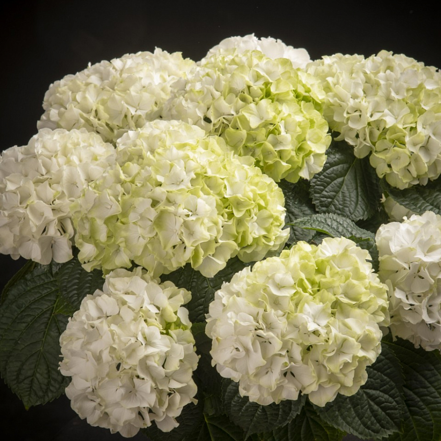 Саженцы гортензии крупнолистной Вуду (Hydrangea macrophylla Wudu) нежное украшение любого сада. Цветет огромными соцветиями, подходит для срезки в букеты. Высота куста достигает 150 сантиметров, в ширину – около одного метра. Прочные ветви усыпаны красивыми листочками, которые делают декоративным куст до начала цветения в июне. Цветочки воронкообразные, бело-зеленого цвета, собраны в соцветия до 25 сантиметров в диаметре. Данный сорт гортензии предпочитает кислые почвы, хорошее увлажнение и дренаж. Предпочтение – хорошо освещенным участкам, защищенным от воздействия сильного ветра.
