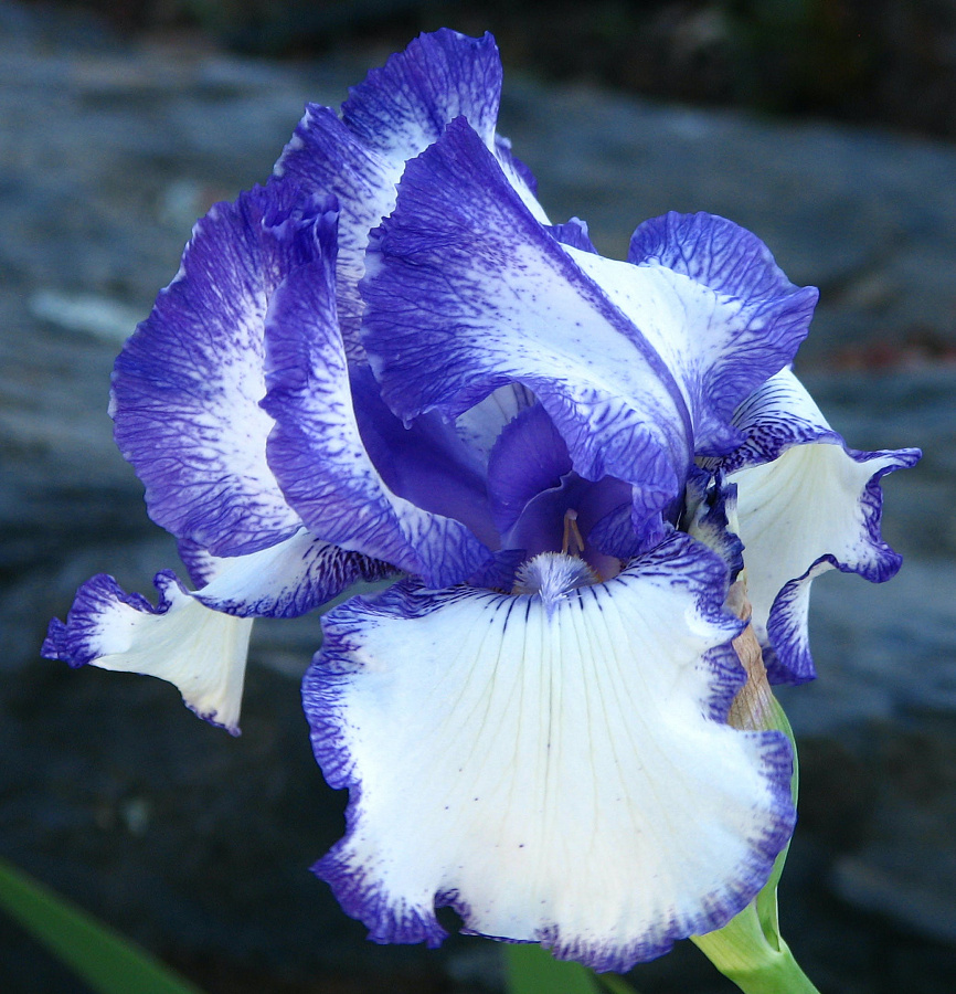 • Окраска цветка : верхние лепестки белые с голубыми прожилками, нижние - темно-синие