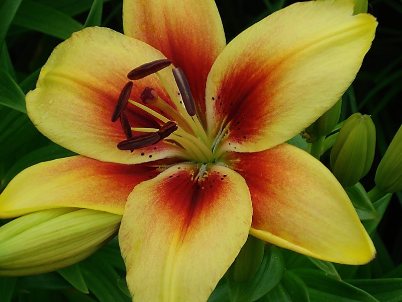 • Окраска цветка : желтые, с красно-коричневым основанием и пыльниками