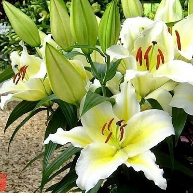Эта лилия цветет весной и летом, радуя глаз своими белыми цветками с нежно-желтыми оттенками. Она предпочитает солнечные и полутенистые места для посадки в дренированных и плодородных почвах.