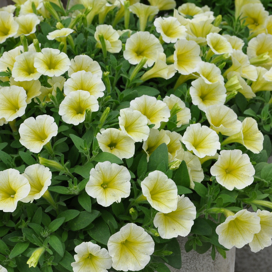 Это растение предпочитает солнечные места, но также хорошо растет в полутени. Для обильного цветения рекомендуется удобрять петунию раз в 2 недели. Частота полива зависит от погоды: в жаркие дни следите за увлажнением почвы. Петуния ампельная F1 Shock Wave Yellow не требует особого ухода, но ей понравится, если вы будете удалять увядшие цветы для продолжения цветения.