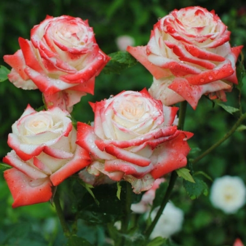 • Окраска цветка : белый с кармино-красными краями