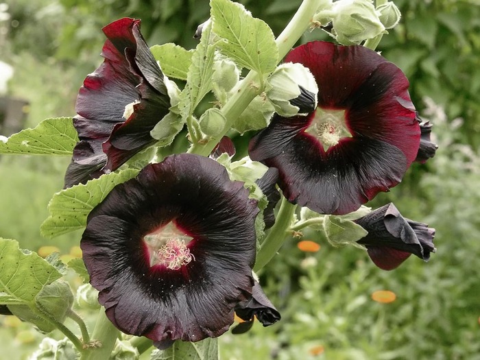 Шток-роза черная - это удивительное растение с шоколадно-коричневыми цветками, которые привлекают взгляд своей необычной окраской. Ее ствол прочный и прямой, достигает высоты до 150-160 см, что делает ее идеальным украшением для вашего сада или огорода. Листья этого растения имеют элегантную форму и придают ему особый шарм.